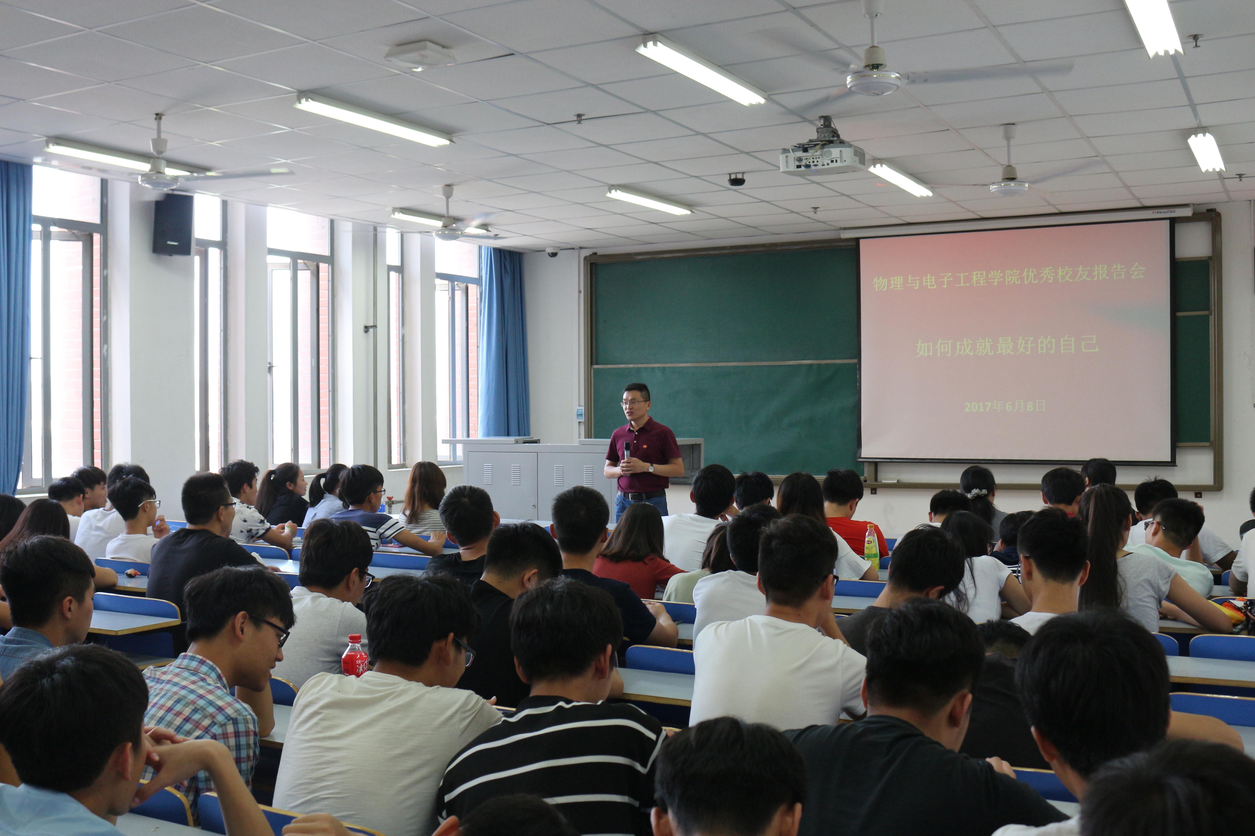 6月8日下午,物理与电子工程学院庆祝建校40周年优秀校友报告会在二教楼704教室举行。报告会邀请了成人短剧