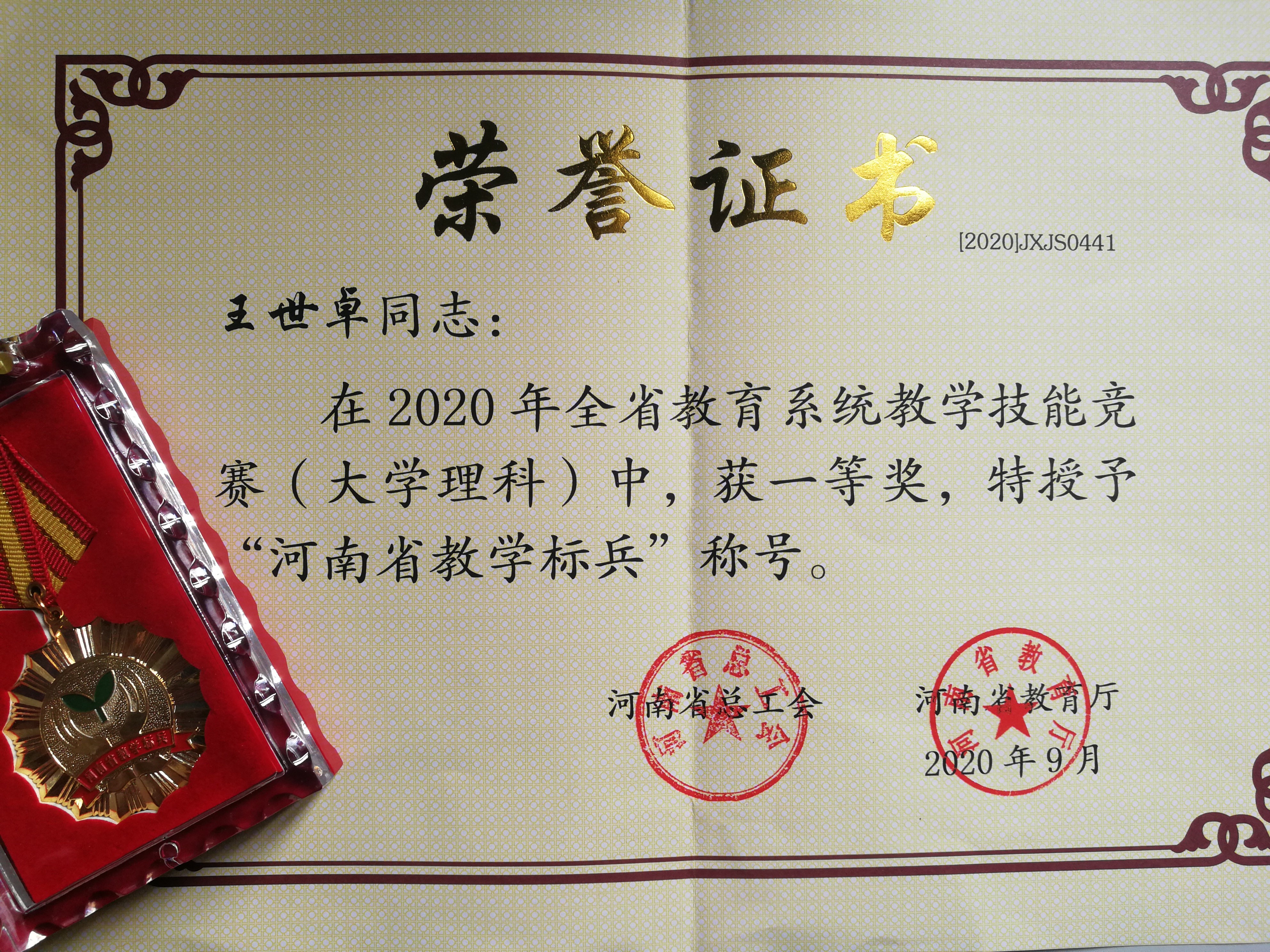 近日,在河南省总工会和河南省教育厅联合举办的河南省教育系统2020年度教学技能竞赛活动中,成人短剧 王世卓老师获得一等奖,并被授予“河南省教学标兵”的荣誉称号。