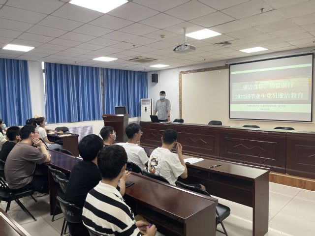 5月27日下午,物理与电子工程学院学生第二党支部在四教楼503会议室召开了2022届毕业生廉洁教育活动,学生第二党支部书记王伟夙、支部全体2022届毕业生党员参与了会议。会上,王老师以《廉洁自律,勇毅前行》为主题,通过分享镜头下的美好山河风光,结合个人感悟和成长经历,有效向毕业生党员阐述了弘扬廉洁精神的重要性和必要性。王老师强调,廉洁是中华民族的传统美德,应内化成个人的修养,在新的人生阶段,难免会遇到诸多诱惑和考验,需牢记人生初心,严守廉洁底线,做遵纪守法、廉洁奉公的践行者与捍卫者。此次活动有效将美育和德育相结合,充分引发了学生的共鸣,有效引导毕业生党员筑牢底线思维,践行清正廉洁的优良品质,为走好风清气正的人生道路奠定基础。