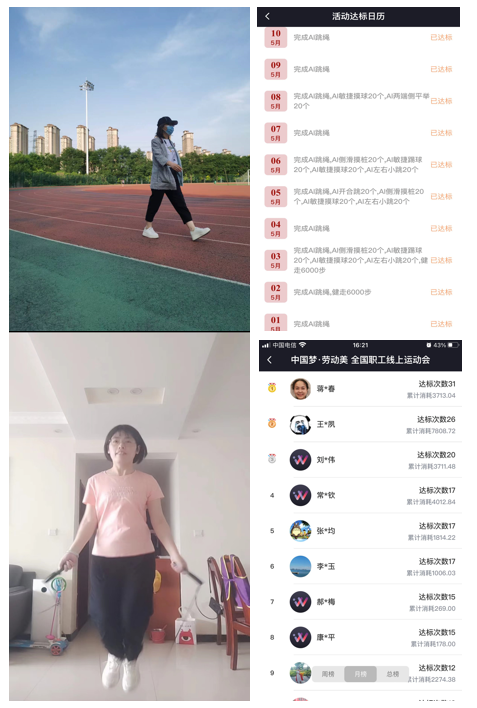 线上运动会以趣动willgo中的AI健身为平台,包含 AI 跳绳、AI 运动、健步走等项目,教职工每天保持运动打卡,要求完成至少10次(每天1次)项目达标,通过达标数评选获奖人员。活动得到了教职工积极参与,据统计,学院参与运动会的教职工均完成了规定达标任务,充分展示了成人短剧