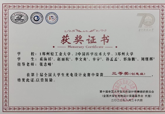 第十届全国大学生光电设计竞赛由中国光学学会主办、华中科技大学承办,主题是“追光逐电,创梦未来”,旨在通过竞赛加强大学生实践、创新能力和团队精神的锻炼与培养,拓宽广大青年学子科学视野,推进产学研用融合,推动科学技术转化,展示高校光电领域创新创业教育成果。