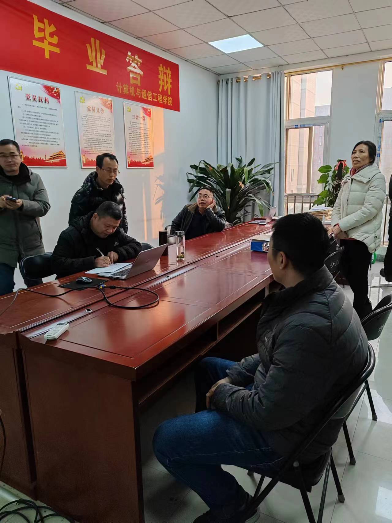 赵阳书记首先代表学院对检查组的到来表示欢迎,并介绍了学院审核评估工作准备情况。冯学超副院长从学院自评自建进展、存在的问题和后续工作计划三方面进行了汇报,总结了学院自评工作中的现状、措施、成效。接下来,检查组对学院的试卷、毕业设计、教研活动等教学资料进行了现场抽取及检查。最后,检查组对抽查情况进行了反馈,并提出了改进建议。