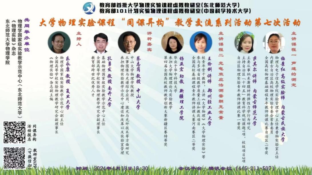 组织教师参加了教育部大学物理实验课程虚拟教研室“同课异构”教学交流活动,活动由复旦大学的乐永康教授主持,中山大学的蔡志岗教授和南开大学的孔勇发教授担任评析嘉宾。