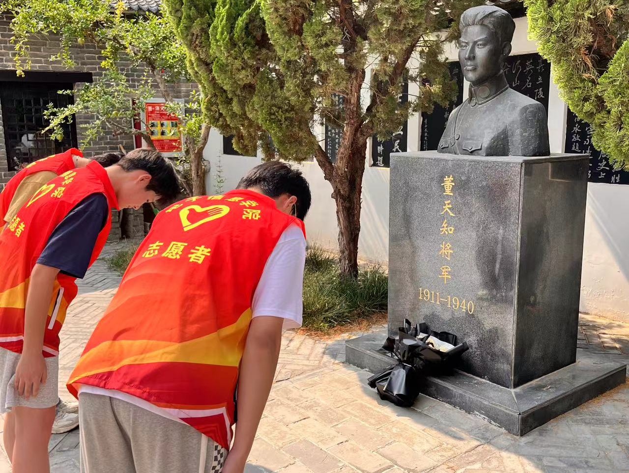 队员们认真阅读了院墙上的题词“赤胆忠心,永垂不朽”、“英气横贯比干岭,壮志长存鸭绿江”、“光芒万丈,永照中华”……这一字一句无一不体现着对董天知将军的高度赞扬和深切缅怀。通过工作人员声情并茂的讲解,同学们对董天知将军的英勇事迹有了更深的了解,队员们心中刻画出一个有血有肉的英雄形象,同时也感受到他心系天下的爱国情怀,敢为人先的赤子之心,以及为国家和人民甘于奉献的伟大精神。