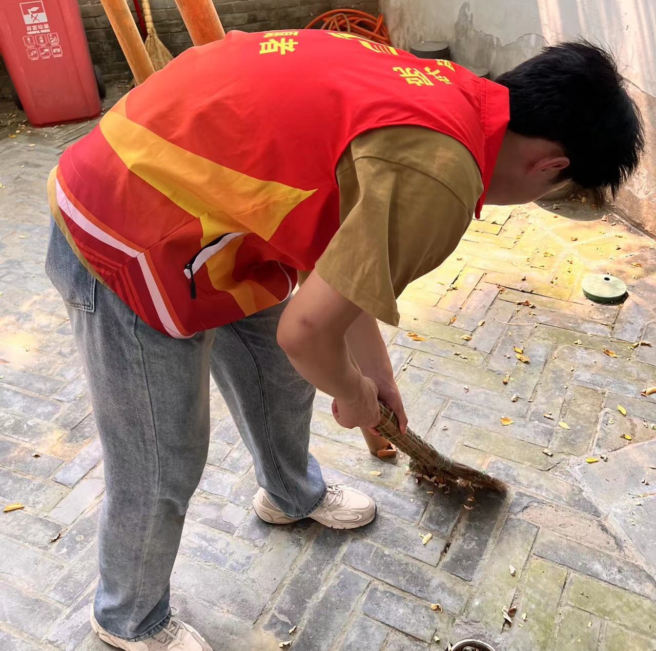 在院中国槐树的树荫下,队员们拿起清扫工具,自发对院中的落叶和室内的尘土进行清扫,他们不仅是为了拂去这些杂物,更是为了表达对董天知将军的敬仰之情以及传承红色基因的决心。