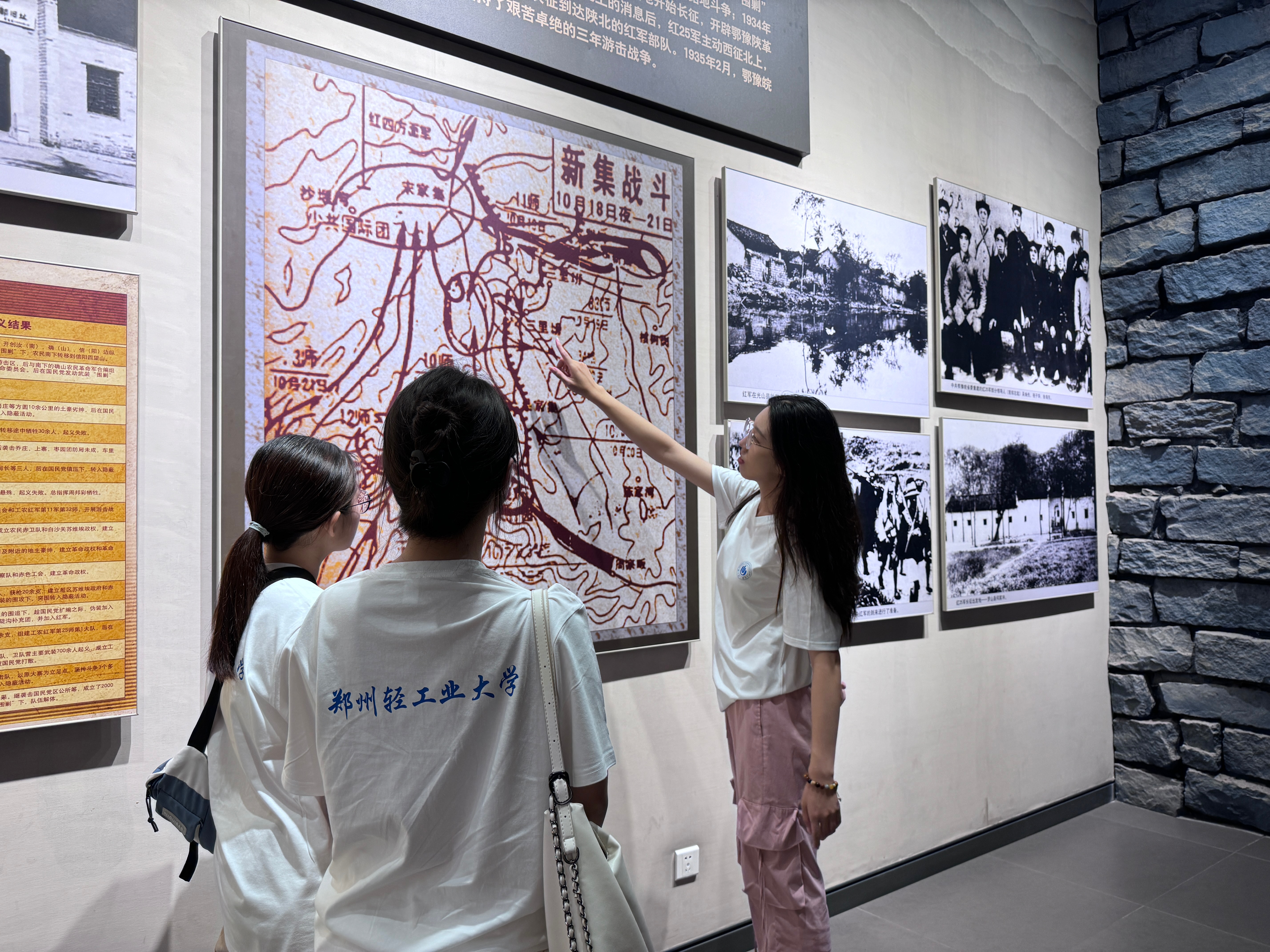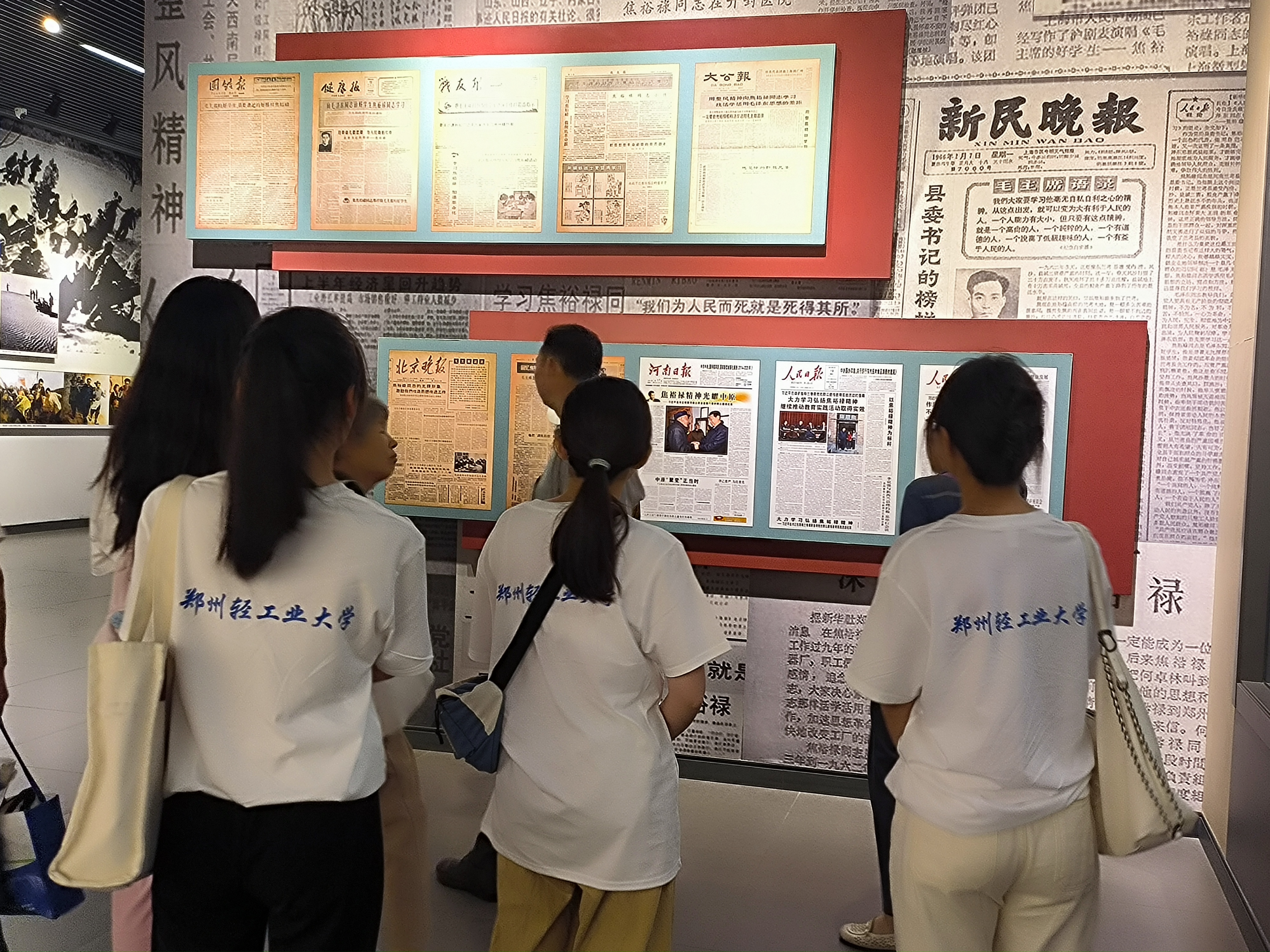 二层是一条圆形的环廊,设有4个烈士展厅,展示了吉鸿昌、杨靖宇、吴焕先、叶成焕、彭雪枫、焦裕禄、任长霞等著名英模人物的英勇事迹。通过参观学习,队员们内心震撼,发现他们都有一个共同的特点,那就是热爱祖国,忠于党忠于人民,愿意为了国家的独立和人民的幸福献出自己的生命。这种精神深深触动了实践队成员,让成员们万分感慨如今的和平来之不易。