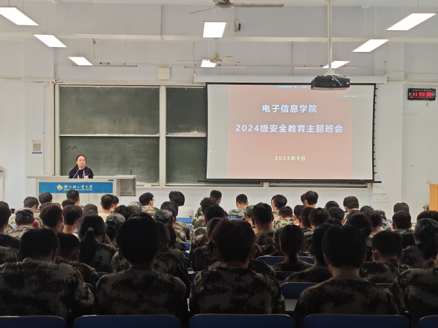 为引导和帮助新生适应新环境、树立安全防范意识,9月14日中午,电子信息学院在东一楼318教室分批次开展2024级新生入学安全教育主题班会,2024级新生辅导员周芳华老师和326名新生参加了此次活动。
