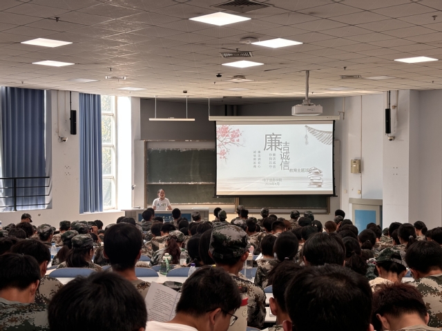 活动中,周老师通过PPT生动形象地向同学们阐述了廉洁与诚信的内涵。围绕以什么是廉洁与诚信、大学生如何做到廉洁与诚信以及廉洁与诚信的榜样三方面来展开,在讲解过程中,穿插了古今中外诸多廉洁奉公、诚实守信的典范事迹,使同学们对廉洁和诚信有了更为直观和深入的理解。随后提出“廉洁一词对大学生看似很远,实则不然”分析了同学们在生活、学习中关于考试、评先评优、奖助学金评定等方面的廉洁诚信问题给同学们打上了一剂强有力的预防针。最后周老师以“古人推崇诚信者,今人厚爱诚信者,历史选择诚信者”来告诫同学们在为人处世中要讲诚信,并以商鞅变法、立木取信、一诺千金等典故为正面例子来总结廉洁诚信品质的可贵之处。