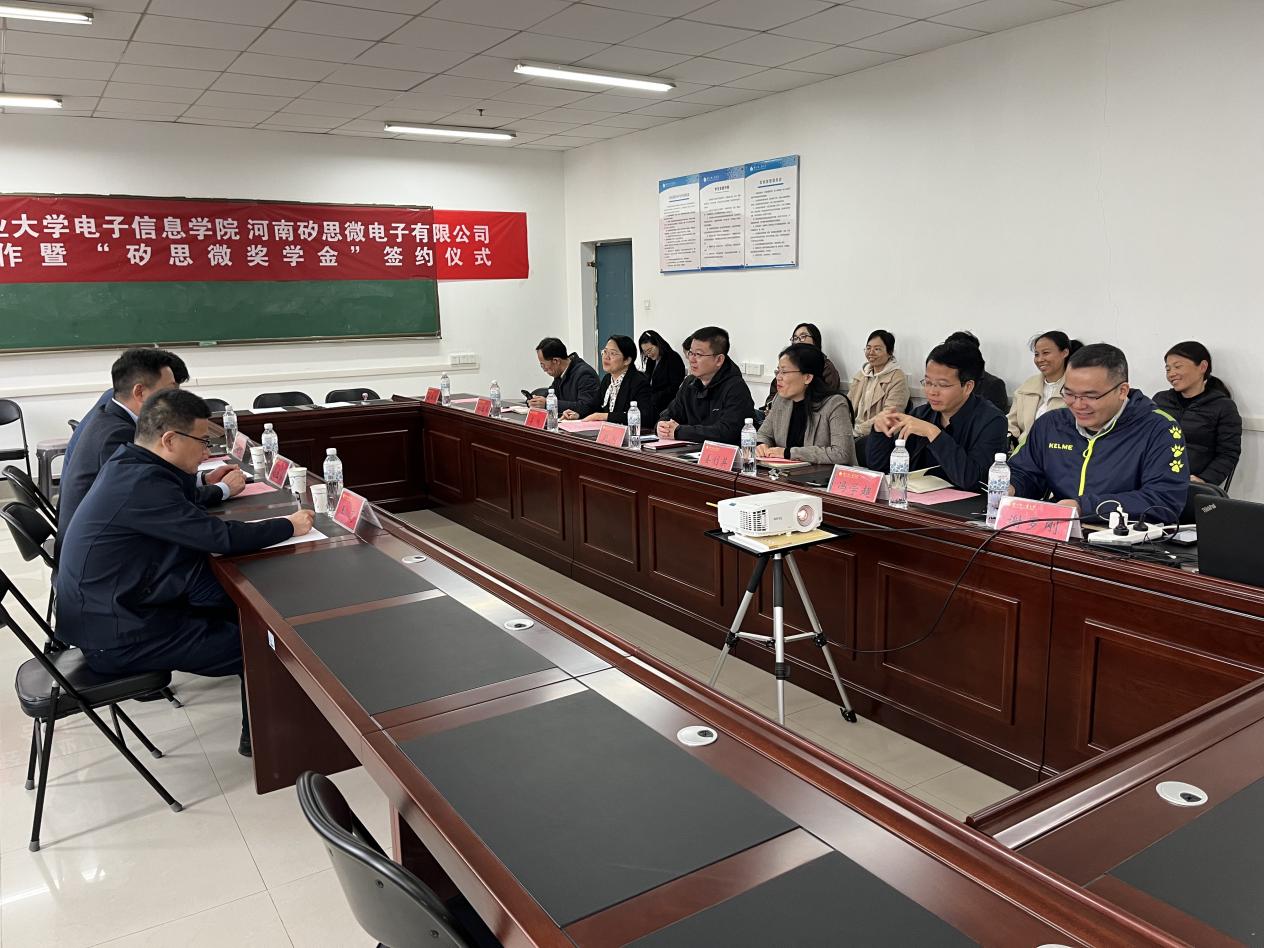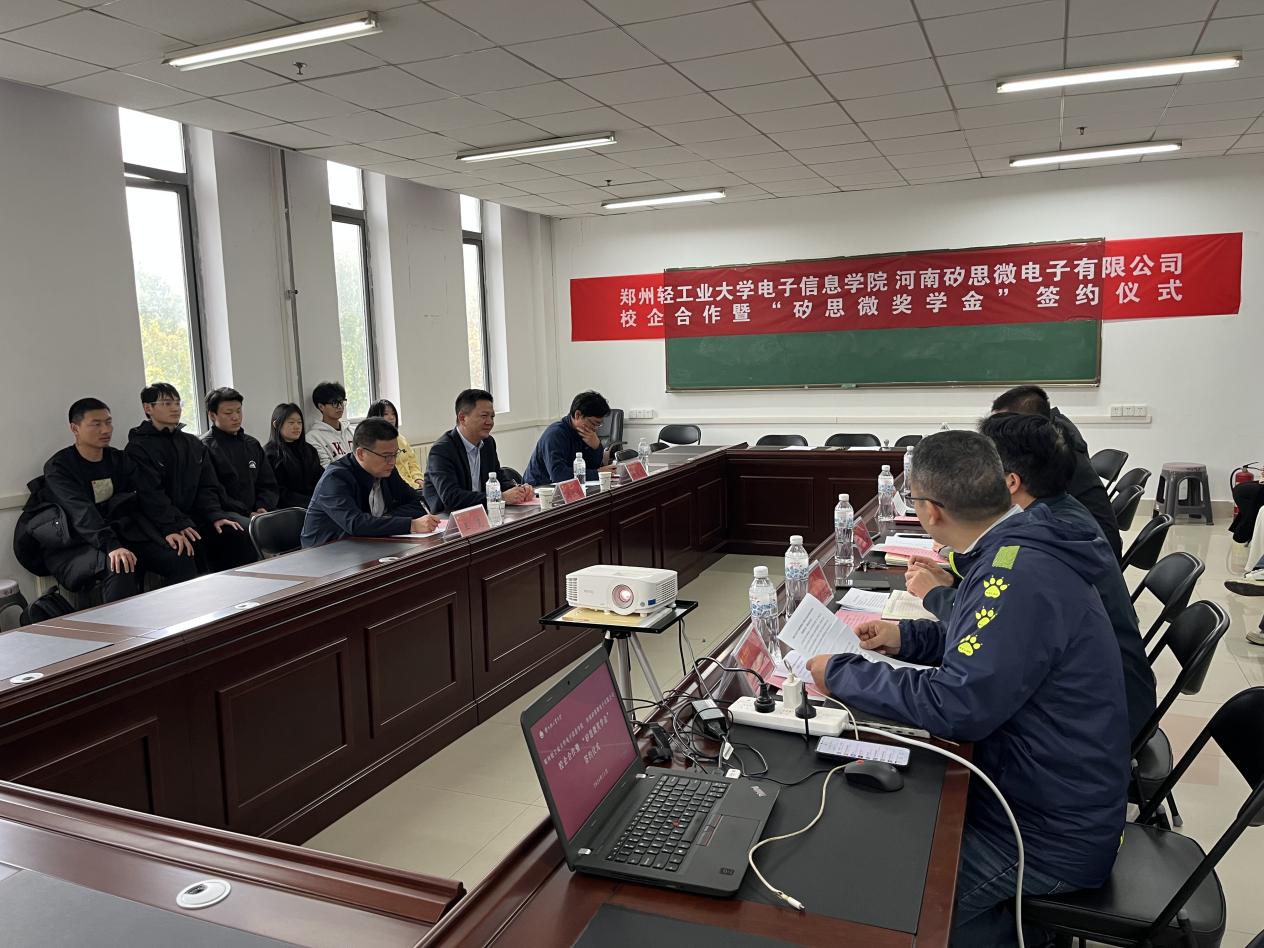 为进一步推动产教融合、深化校企合作,11月7日下午,成人短剧 与河南矽思微电子有限公司、郑州中科集成电路与系统应用研究院在四教楼305会议室举行校企合作暨“矽思微奖学金”签约仪式。河南矽思微电子有限公司总经理冯立伟,郑州中科集成电路与系统应用研究院院长助理赵俊超,河南矽思微电子有限公司副总经理王克,成人短剧 班子成员、教师及学生代表参加签约仪式。会议由微电子科学与工程系主任谢罗刚主持。