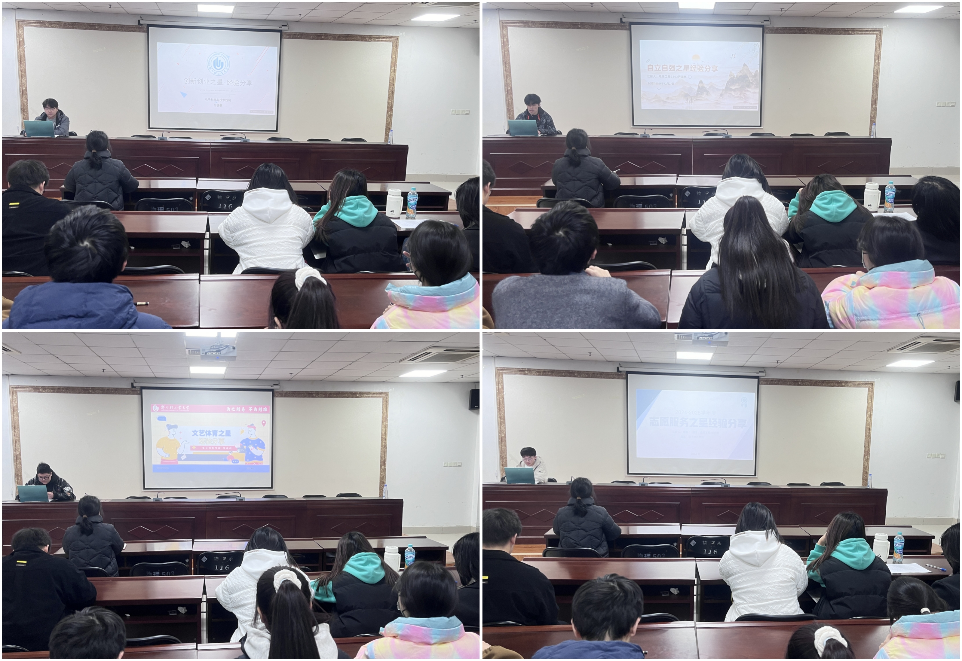 为充分发挥优秀学生榜样引领示范作用,12月27日,成人短剧 在四教503举办“轻大学子·榜样力量”主题宣讲会。学院团委书记周芳华、第十一届“轻大学子·榜样力量”先进典型获得者及各班学生代表参加了此次会议。