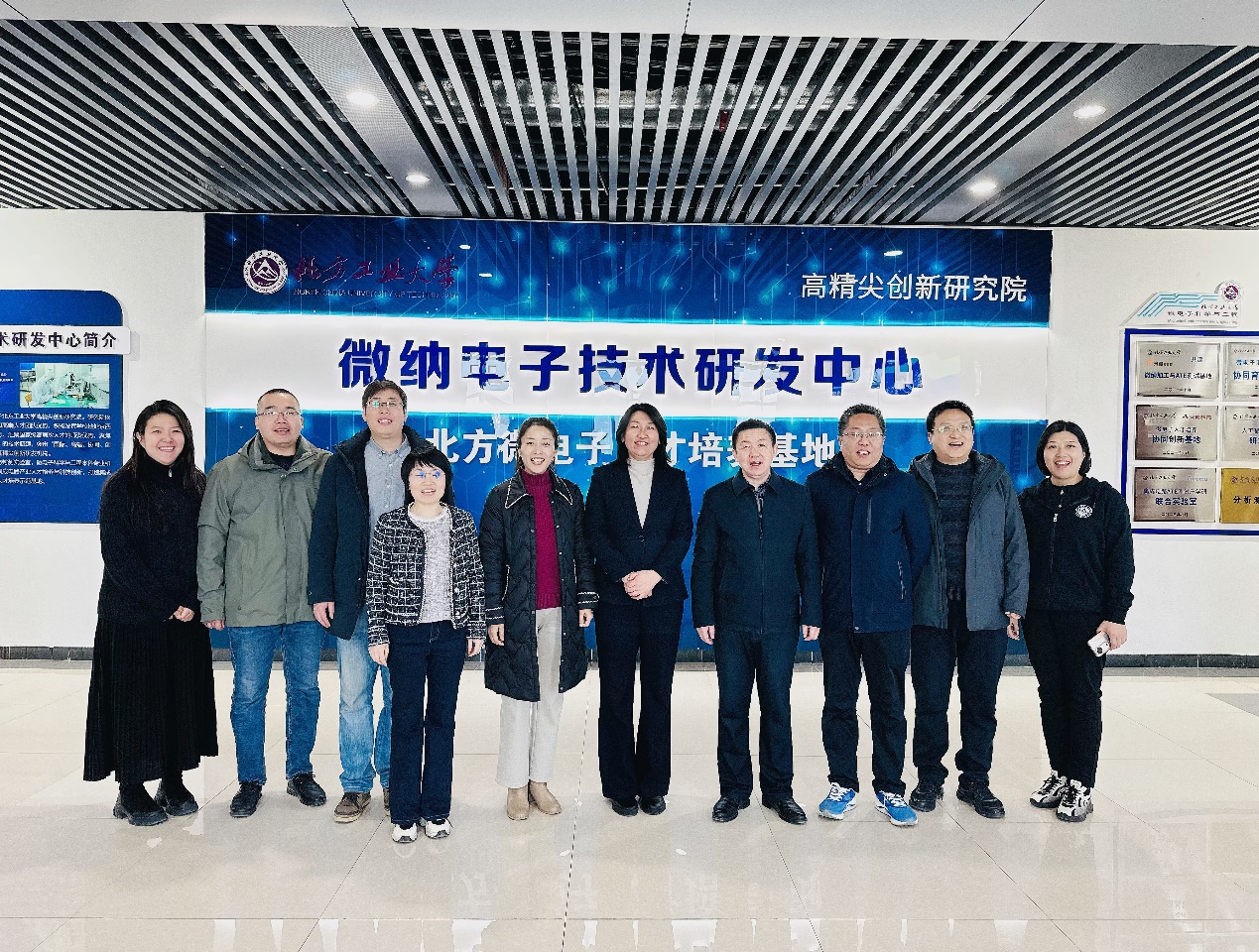 在北方工业大学集成电路学院,调研团队参观了芯片封测实践基地和微纳电子技术研发中心。北方工业大学集成电路学院副院长张静教授详细介绍了学院专业建设情况,双方围绕人才培养方案、专业课程体系、专业特色凝练、专业实验室建设和产教融合方面开展了深入交流。