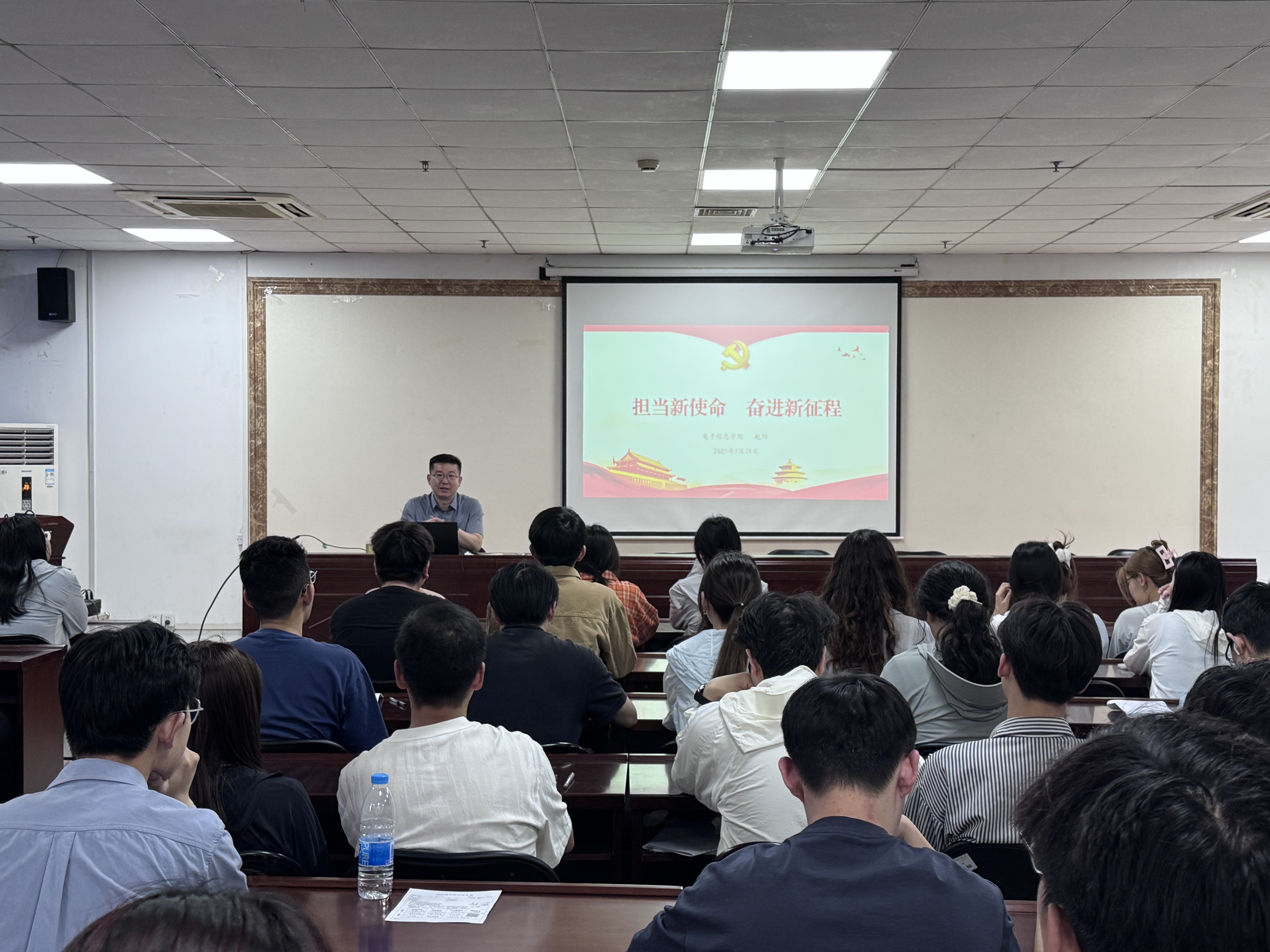 5月28日上午,成人短剧 党委书记赵阳以《担当新使命 奋进新征程》为主题讲授专题党课,学院毕业班辅导员杨若雨、全体2025届毕业生党员聆听了党课。