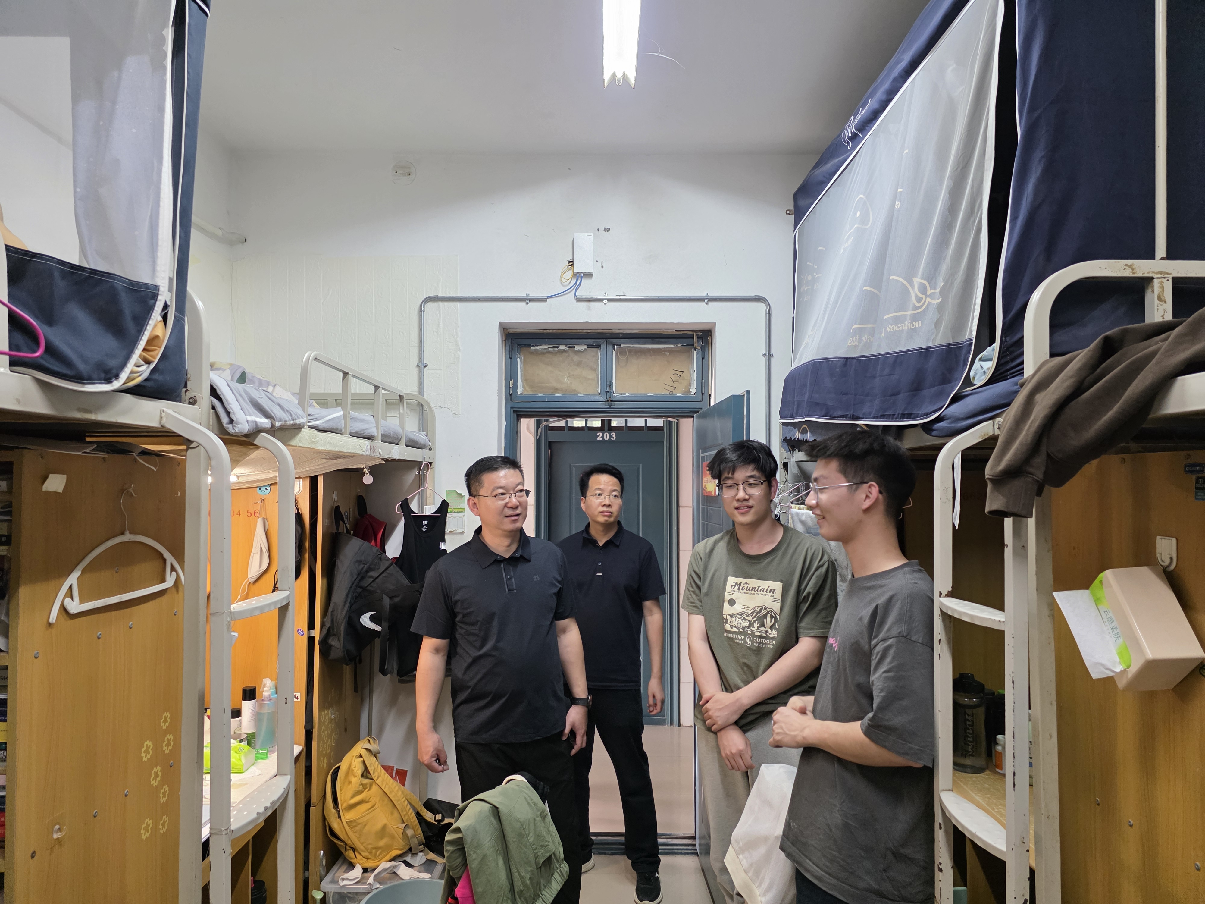 为切实做好毕业生文明离校工作,6月5日下午,成人短剧 班子成员与辅导员老师一同走进毕业生宿舍,开展走访慰问活动,为即将踏上人生新征程的学子们送上学院的关怀与祝福。