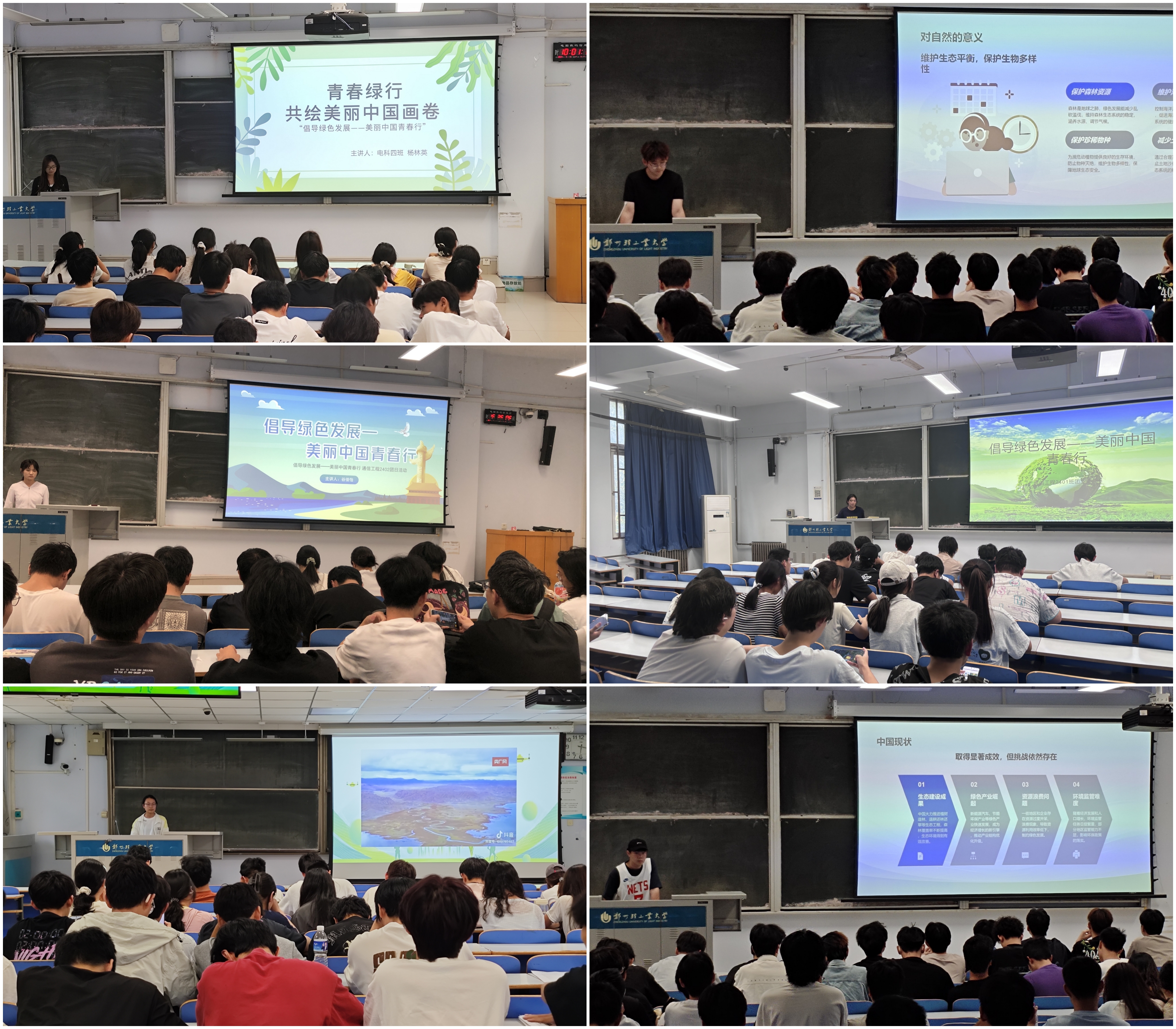 活动中,各支部通过开展主题演讲、交流分享、观看视频资料等形式,从习近平生态文明思想出发,向大家普及习近平总书记有关生态文明建设的发展战略、发展路径等知识;分享了不同环保践行者的故事,如“治沙英雄”的坚守、“零废弃达人”的日常;让同学们理解了“山水林田湖草沙生命共同体”的深刻内涵,引导同学们思考自身在绿色发展中的责任,鼓励同学们将环保理念融入生活,为地球添绿增彩。通过学习,同学们纷纷表示,作为新时代青年,要发挥共青团员的先锋模范作用,带动更多人参与环保行动,以青春之力守护绿水青山,共同绘就美丽中国的壮丽画卷。