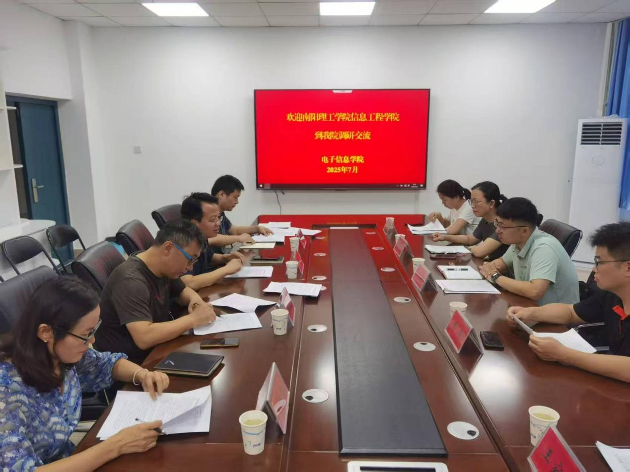 7月2日,南阳理工学院信息工程学院电子信息工程专业孙曦主任一行5人到成人短剧 调研交流。座谈会在四教楼310会议室举行,副院长冯学超、电子信息工程系主任夏永泉及部分骨干教师参加座谈会。