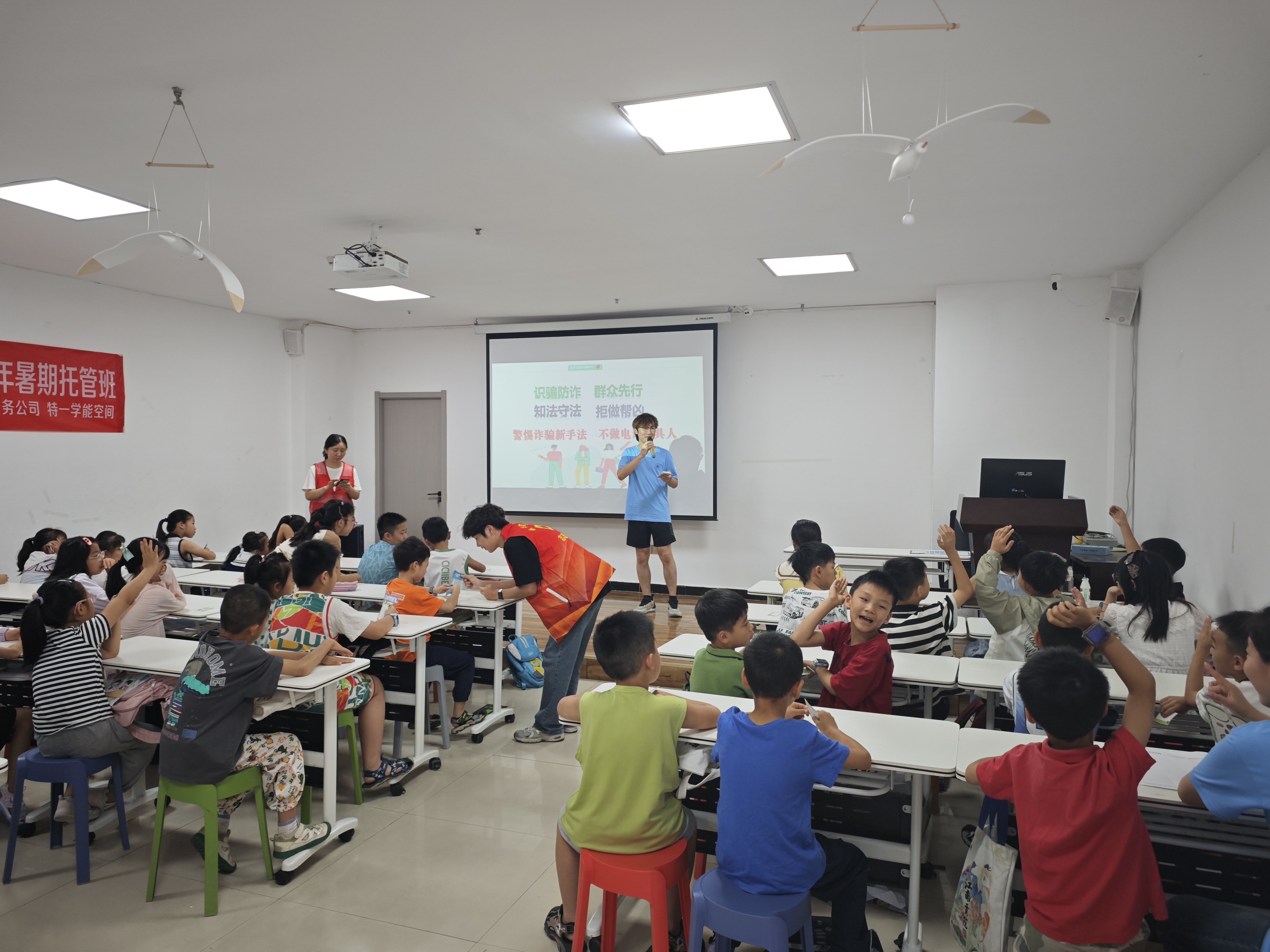 在社区活动中心,实践队员们组织了“反诈情景剧”“快问快答小游戏”等互动环节,吸引了众多社区小朋友参与。通过这些游戏,他们不仅在轻松愉快的氛围中学习到了反诈知识,还增强了对电信诈骗行为的警惕性。同时实践队员们还开展“一对一”咨询服务,结合真实案例剖析诈骗分子的惯用伎俩,向小朋友讲解“网络交友诈骗”“充值诈骗”等常见类型。