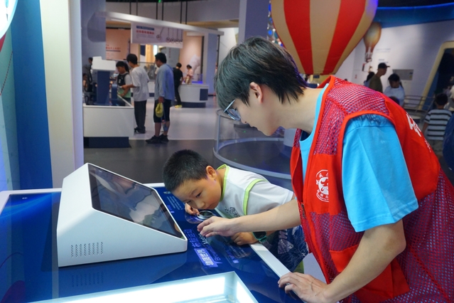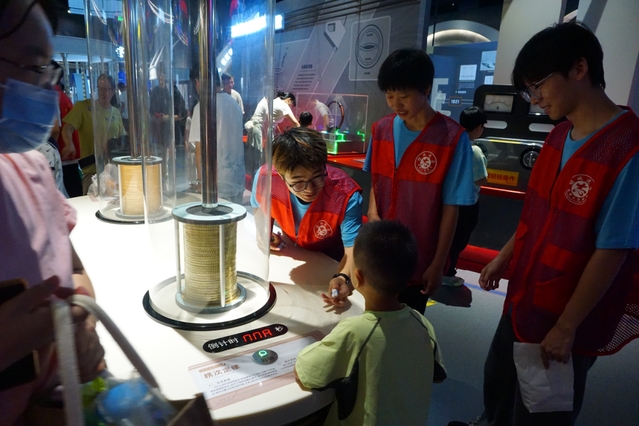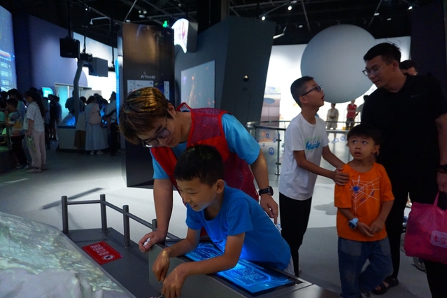 科技馆的展品成为实践队员们开展科普的“生动教材”。在布朗运动、物质特性等展区,队员指着墙上的宇航员、运动轨迹示意图,结合展品操作,为小朋友讲解微观世界的奥秘,面对航空航天主题展品,实践队员从宇航员服装特性讲到太空探索意义,把遥远的太空知识讲给小朋友们。