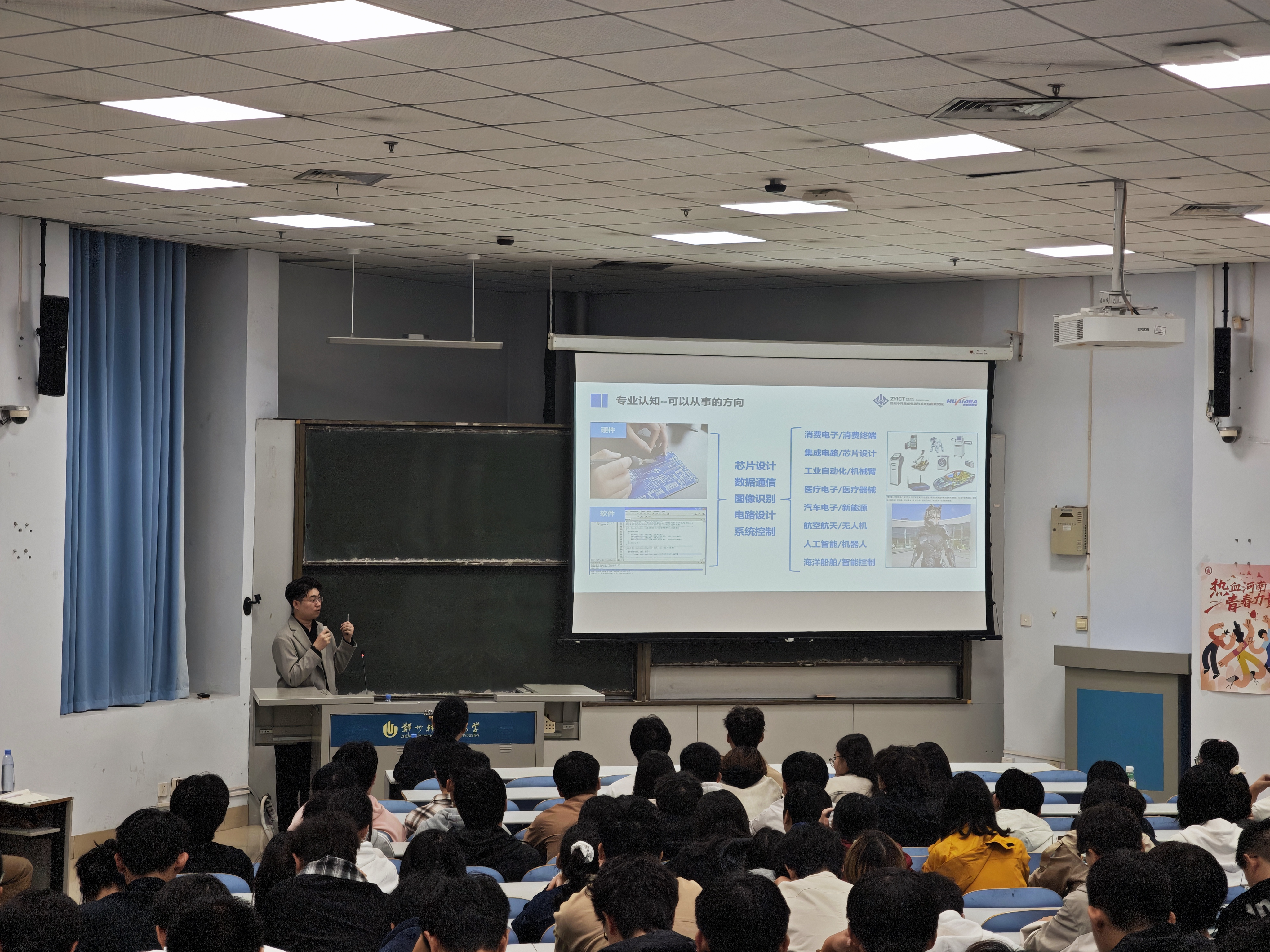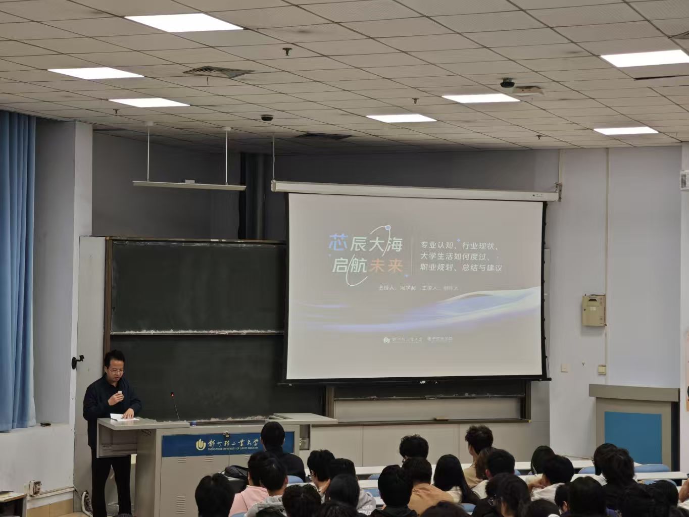 为助力2025级新生了解电子信息行业发展趋势,明确专业学习方向与职业规划,10月16日,成人短剧 在教三楼203教室举办“‘芯’辰大海·启航未来”新生入学企业专家讲座。本次讲座特邀郑州中科集成电路与系统应用研究院校企合作总监白杰、高级工程师胡修太担任主讲嘉宾,学院副院长冯学超、相关专业教师及2025级全体新生参加活动。