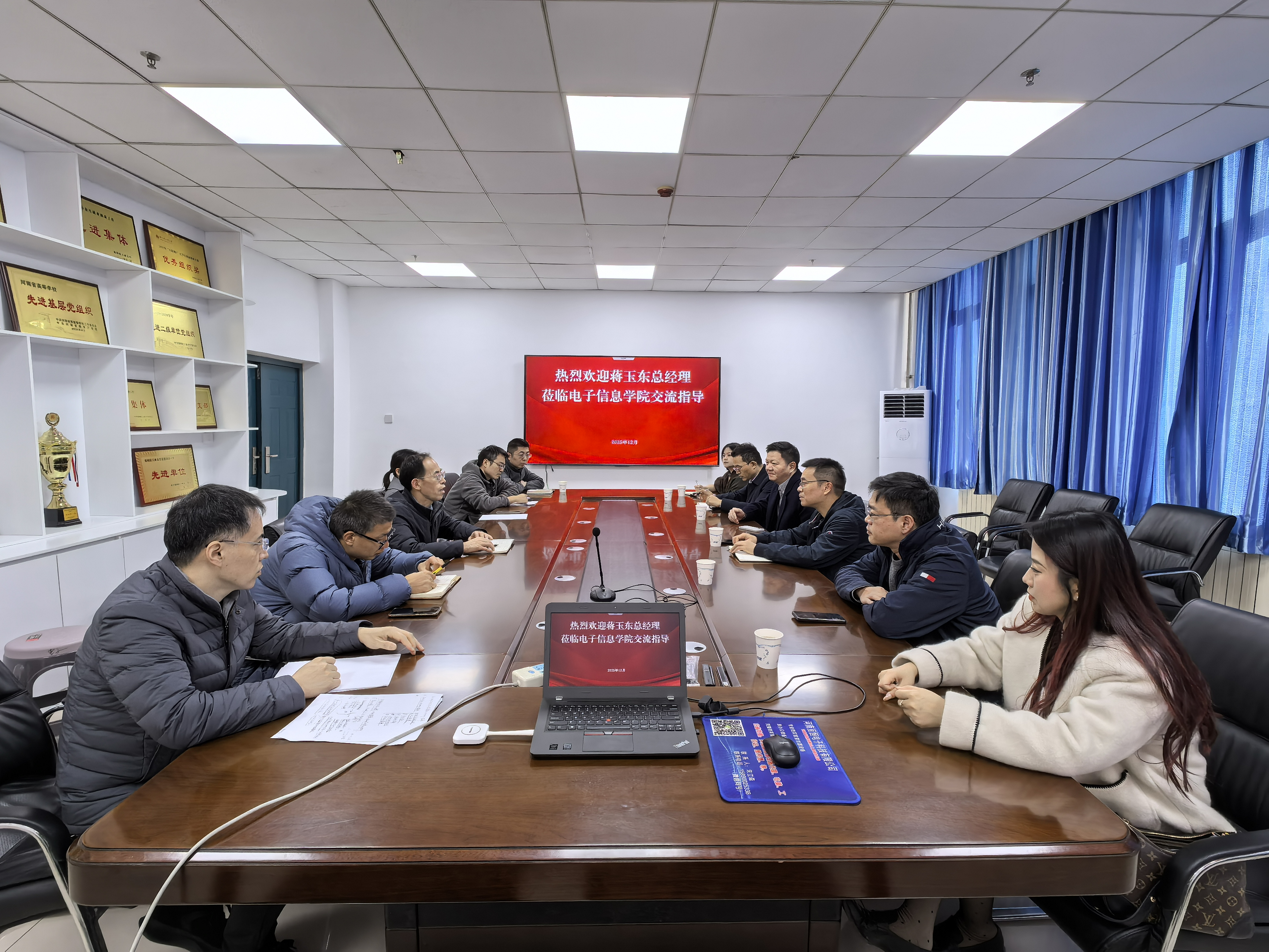 刘德伟副院长首先对蒋玉东总经理一行的到来表示热烈欢迎,随后详细介绍了学院的发展历程、师资力量、专业设置、科学研究及人才培养等方面的情况。蒋玉东总经理介绍了四川锦龙微电科技有限公司的发展历程、主营业务以及对人才需求情况。随后,河南矽思微电子有限公司冯总介绍了公司在集成电路芯片设计方面的人才培养经验,郑州中科集成电路与系统应用研究院梁总介绍了校企在芯片制造、封装测试方面的合作基础。最后,校企与会人员就科研项目合作、课程建设、实践实训等议题进行了深入探讨。