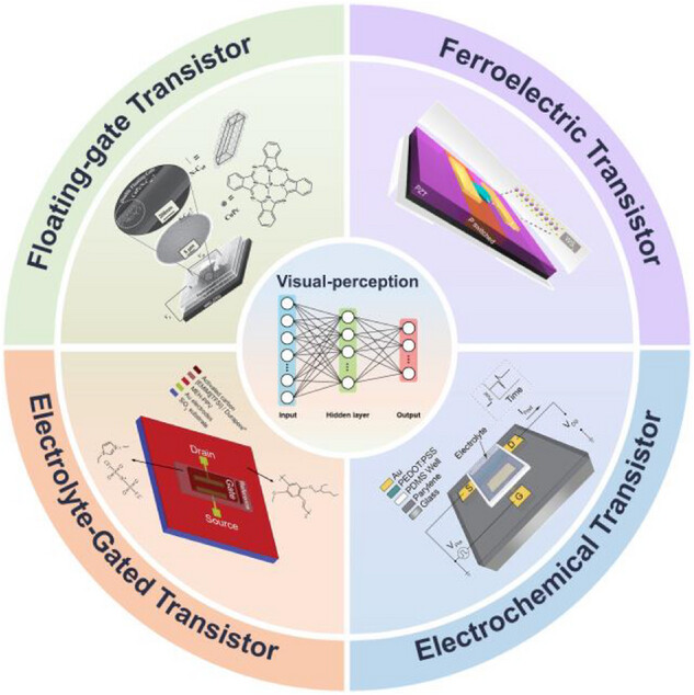 随着人工智能与机器学习的飞速发展,传统冯·诺依曼架构因计算与存储单元的物理分离,面临着高延迟、高能耗等严峻挑战。相比之下,生物视觉系统凭借存算一体、并行处理及超低功耗等特性,为新一代智能计算提供了重要范本。团队系统总结了基于场效应晶体管(FET)的人工视觉神经形态系统的最新研究进展。文章详细阐述了浮栅FET、铁电FET、有机电化学FET和电解质栅FET等不同器件结构的材料选择、工作机制及其在模拟生物视觉功能中的关键作用。研究指出,FET器件凭借优异的光电调控能力、机械柔性和低功耗操作,已成为构建人工视觉感知系统的主流平台,并在边缘检测、模式识别、多感官融合等任务中展现出巨大潜力。该综述为设计下一代仿生视觉电子器件和突破冯·诺依曼瓶颈提供了系统的理论指导和前沿洞察。